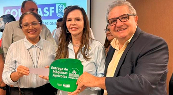 A entrega ocorreu na sede da Codevasf, em Palmas, e contou com a presença da prefeita Tota, acompanhada do secretário de Finanças, Francimar; do secretário de Obras e Serviços Urbanos, Lucival Fernandes; do presidente da Câmara Municipal, Gilberto Alves; dos vereadores Ornido, Lorim, Joana Darque, Thiago Rodrigues e Lucas Ribeiro; além do operador de máquinas Júnior.